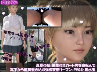Uncategorized 真夏の駅:廻里のスカート内を寝転んで真下から直接覗き込む強者変態リーマン・PV04:黒水玉フルバックパンティ