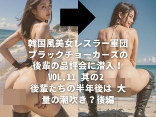 Uncategorized 韓国風美女レスラー軍団 ブラックチョーカーズの 後輩の品評会に潜入!Vol.11 其の2 後輩たちの半年後は 大量の潮吹き?後編