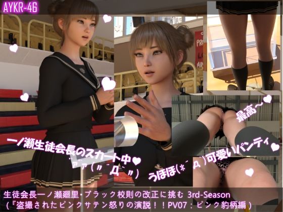 【▲200】生徒会長一ノ瀬廻里・朝の全校演説 3rd-Season(『盗撮されたピンクサテンパンティー!怒りの演説!!』PV07:ピンクヒョウ柄編)