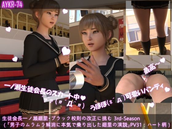 【▲100】生徒会長一ノ瀬廻里・ブラック校則の改正に挑む 3rd-Season(『男子のムラムラを解消しようと奔走する廻里のの演説!まさか学校でオ〇ホの配布!?』PV31:ハートのパンティー