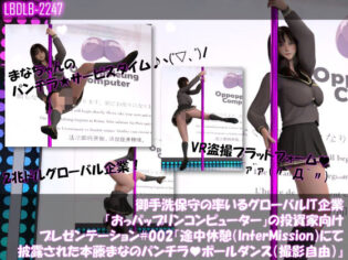 Uncategorized 【●100△100】御手洗保守の率いるグローバルIT企業「おっパップリンコンピューター」の投資家向けプレゼンテーション#002『途中休憩時間で披露された本藤まなちゃんのパンチラポールダンス』